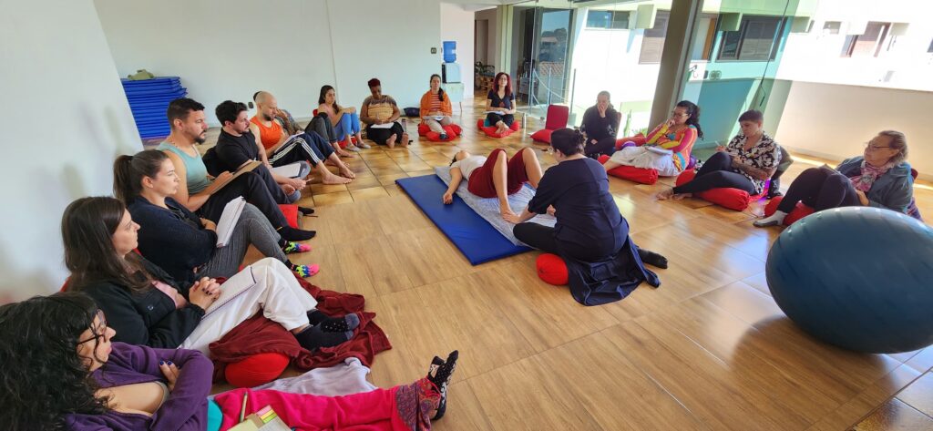 Reconectar-se ao corpo: o primeiro passo para transformar o trauma Durante uma das vivências da Formação em Terapia de Somatização do Trauma, há um momento em que os participantes são